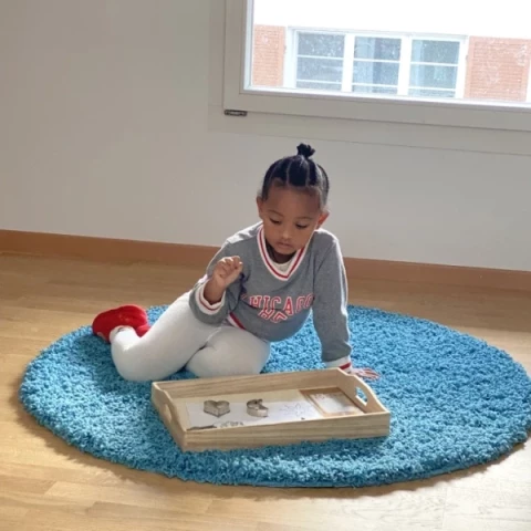 Unser Montessori-inspirierter Raum ist mit sorgfältig vorbereiteten Aktionstabletts ausgestattet. Diese Spiel- und Lernangebote laden die Kinder dazu ein, mit Alltags- und Naturmaterialien selbstständig und ausdauernd zu spielen, zu forschen und zu lernen. Die Montessori-Pädagogik ist bis heute weltweit anerkannt und wegweisend. Im Zentrum steht das Bild des Kindes als „Baumeister seiner selbst“. Der Leitsatz von Maria Montessori „Hilf mir, es selbst zu tun“, prägt unser pädagogisches Handeln im Kita-Alltag.